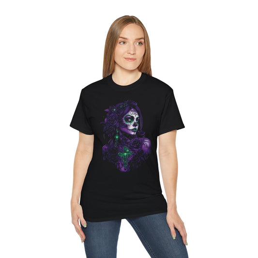 Dia de los Muertos Lila T-Shirt | Hochwertig, 100 % Baumwolle, Weich & Bequem mit Rundhalsausschnitt