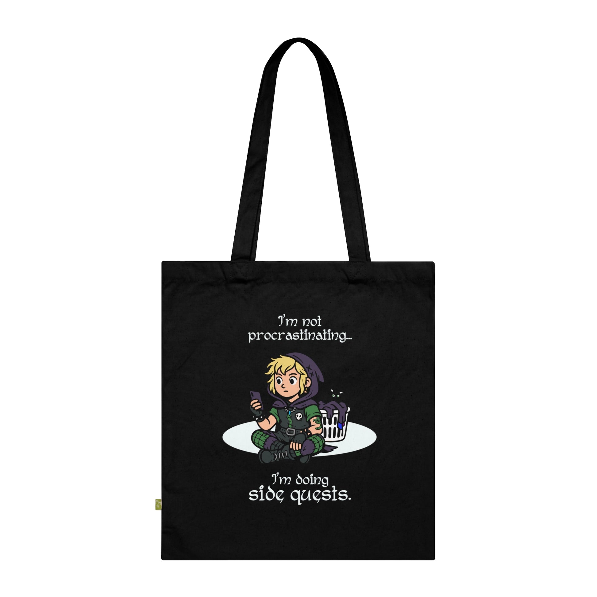 I'm not procrastinating. I'm doing side quests. - Stoffbeutel, Einkaufstasche aus Bio-Baumwolle, umweltfreundliches Geschenk, Stoffbeutel mit Totenkopfmotiv, Tasche im Boho-Stil