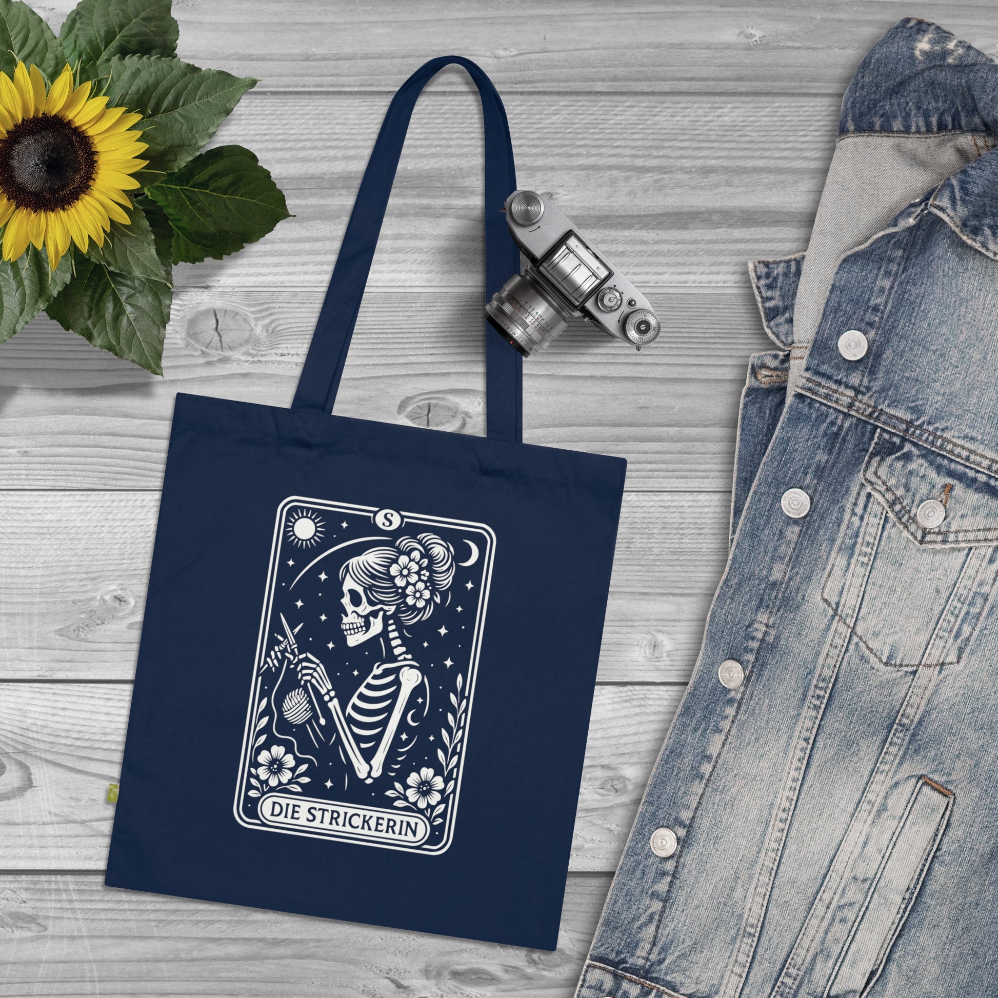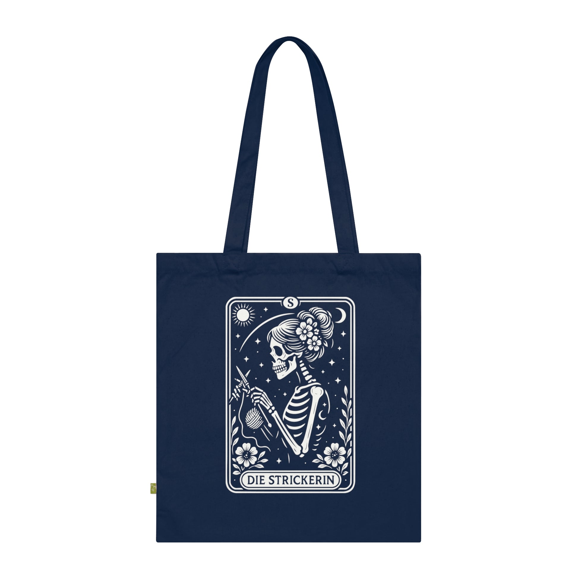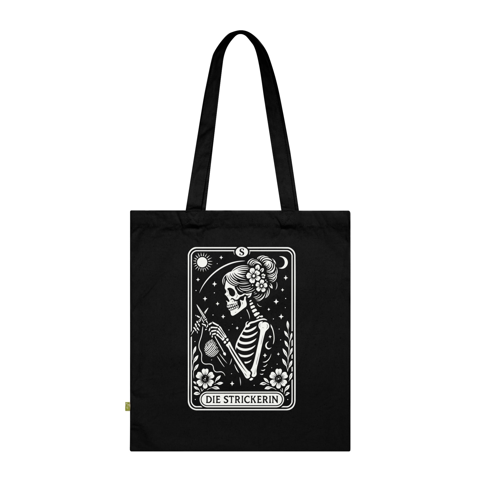 - Tarrot der Strickerin - Stoffbeutel, Einkaufstasche aus Bio-Baumwolle, umweltfreundliches Geschenk, Stoffbeutel mit Totenkopfmotiv, Tasche im Boho-Stil