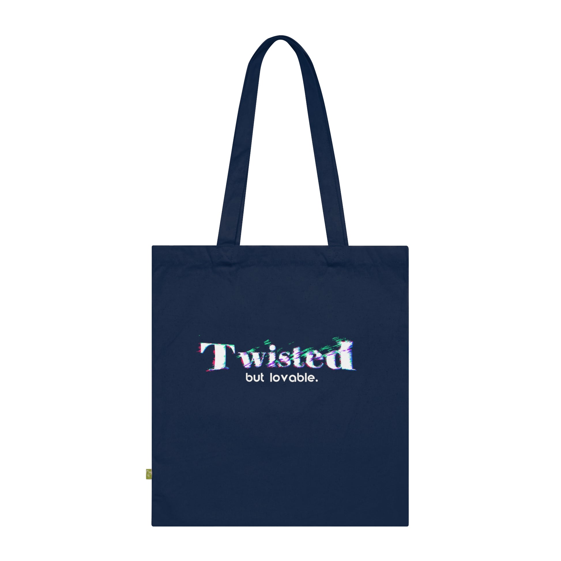 Twisted but lovable - Stoffbeutel, Einkaufstasche aus Bio-Baumwolle, umweltfreundliches Geschenk, Stoffbeutel mit Totenkopfmotiv, Tasche im Boho-Stil